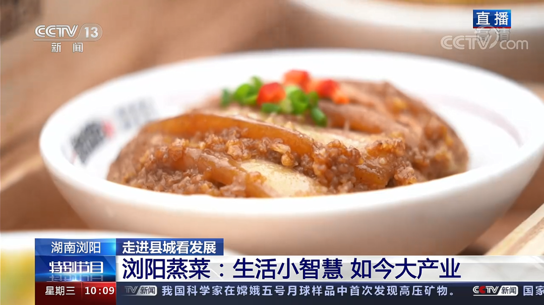 昨日,中央廣播電視總臺(tái)新聞?lì)l道推出大型直播特別節(jié)目“走進(jìn)縣城看瀏陽(yáng)”。直播中,央視總臺(tái)記者姜文婧走進(jìn)智慧瀏陽(yáng)河文化商圈的文化創(chuàng)意集市,現(xiàn)場(chǎng)品嘗蒸瀏記帶來(lái)的地道瀏陽(yáng)蒸菜。